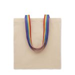 180 gr/m². cotton shopping bag with rainbow colour handles. Carry weight limit 2.5kgs.