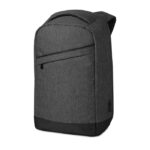 600D 2 tone Polyester backpack with padded shoulder strap with main internal compartment. Includes one internal 13'' laptop compartment and an USB charging cable. Zipper main compartment on backside for better protection.