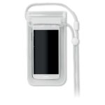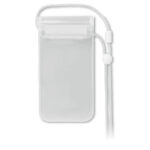 Waterproof smartphone pouch made in PVC with polyester cord. Safety buckle and stopper. The pouch has a thinner surface that allows the operation of the touch screen from the outside.