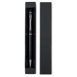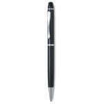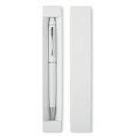 Twist action ball pen in aluminium twist stylus. Blue ink. Presented in paper box.
