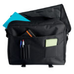 Document flap bag in 600D polyester with zipped main compartment and several pockets with an adjustable and detachable shoulder strap.