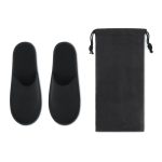 Pair of polyester hotel slippers presented in a non woven pouch. EUR size 43 - 44.