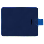Foldable fleece blanket with plastic coated PEVA reverse side.
