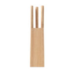 Wooden knife set. Includes base holder and 5 knives: Chef, bread, slicing, multi-functional and paring. Stainless steel with wooden handle.