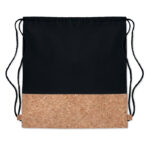 Twill cotton drawstring bag with a cork detail. 160 gr/m². Cork is a natural material, due to its structural nature and surface porosity the final print result per item may have deviations.