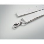 Lanyard in seed paper with detachable buckle. Wildflower seeds recycled paper. 20mm wide. Including metal hook. Made in EU.