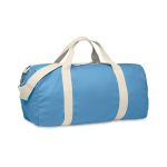 Duffle bag in recycled fabrics (60% recycled cotton, 40% recycled polyester) in 320 gr/m² with handle natural cotton webbing and an adjustable and detachable shoulder strap.