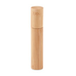Mini perfume refillable atomiser bottle with bamboo casing. Capacity: 10 ml.