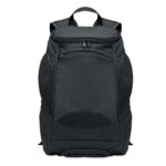 Multifunctional 600D RPET sports rucksack with several compartments (including padded compartment for paddle racket). Includes adjustable shoulder strap.