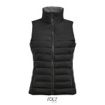 SOL'S WAVE Women's Bodywarmer/vest in lightweight material. This is the sleeveless version of the popular Ride jacket but offers greater freedom of movement. Can also be used as an extra layer under a jacket. Wind and water repellent material, 2 pockets with stylish zippers and colour matched lining, high collar, stylish fit, Tone-on-tone reinforcement at the hem. Fabric details: 100% nylon, lini Only sold with print